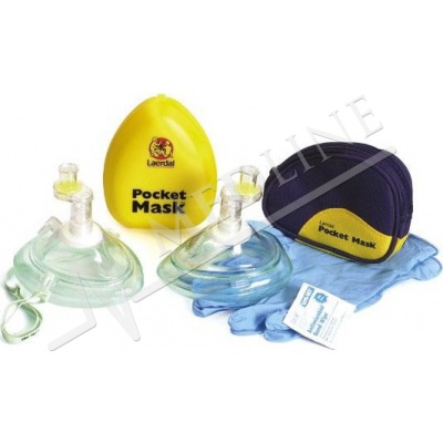 Laerdal Pocket Mask, invólucro, luvas, toalhete desinfetada.